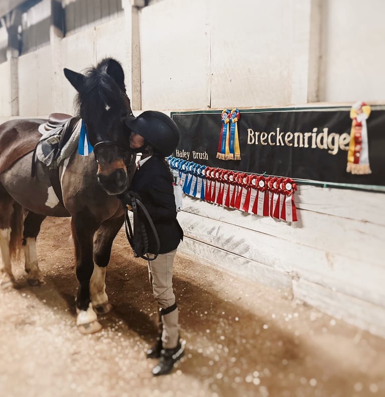 Welcome to Breckenridge Farms, a Hunter/Jumper focused program in Leonard, Michigan, where Horses truly come first, We believe that great riding starts with happy, healthy horses and we are proud to offer a supportive, family-like environment for riders of all levels and ages. Whether you're just starting your Equestrian journey or looking to take your skills into the show ring, our program blends solid training, quality horsemanship, and a whole lot of fun. At Breckenridge Farms, it's not just about training and ribbons, it's about building a lasting partnership between horse and rider while keeping care, respect, and love for the horse at the heart of everything we do.